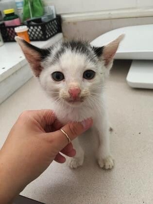 Peony came to us one afternoon after we were closed for the day. One of our staff members was coming back into the shelter after driving a long transport and a car pulled up in a hurry, tossed the kitten into her arms and said the kitten's mother had been hit by a car. She was only a few weeks old, too young to stay at the shelter alone overnight, so we contacted the Hughes family. They have been loyal bottle baby kitten fosters for years and of course, they took over her care without hesitation.